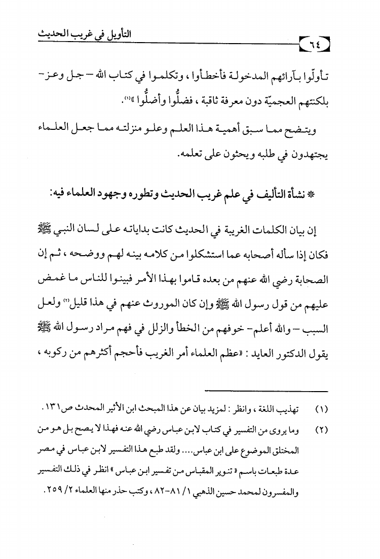 التأويل في غريب الحديث من خلال كتاب النهاية لابن الأثير