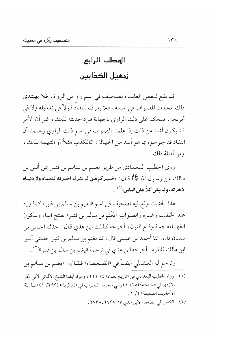 التصحيف وأثره في الحديث والفقه وجهود المحدثين في مكافحته