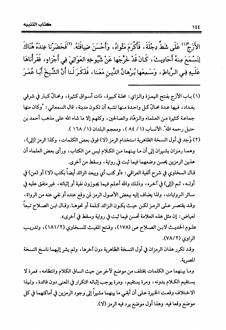 نام کتاب : التنبيه علي الألفاظ التي وقع في نقلها وضبطها تصحيف وخطاْ في تفسيرها ومعانيها وتحريف في كتاب الغريبين لأبي عبيد الهروي نویسنده : محمد بن ناصر بن محمد بن علي أبو الفضل السلامي جلد : 1 صفحه : 144