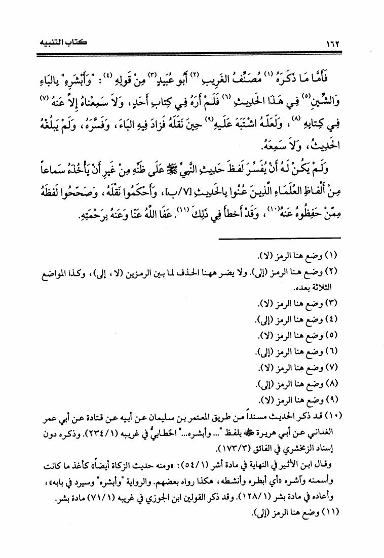 نام کتاب : التنبيه علي الألفاظ التي وقع في نقلها وضبطها تصحيف وخطاْ في تفسيرها ومعانيها وتحريف في كتاب الغريبين لأبي عبيد الهروي نویسنده : محمد بن ناصر بن محمد بن علي أبو الفضل السلامي جلد : 1 صفحه : 162