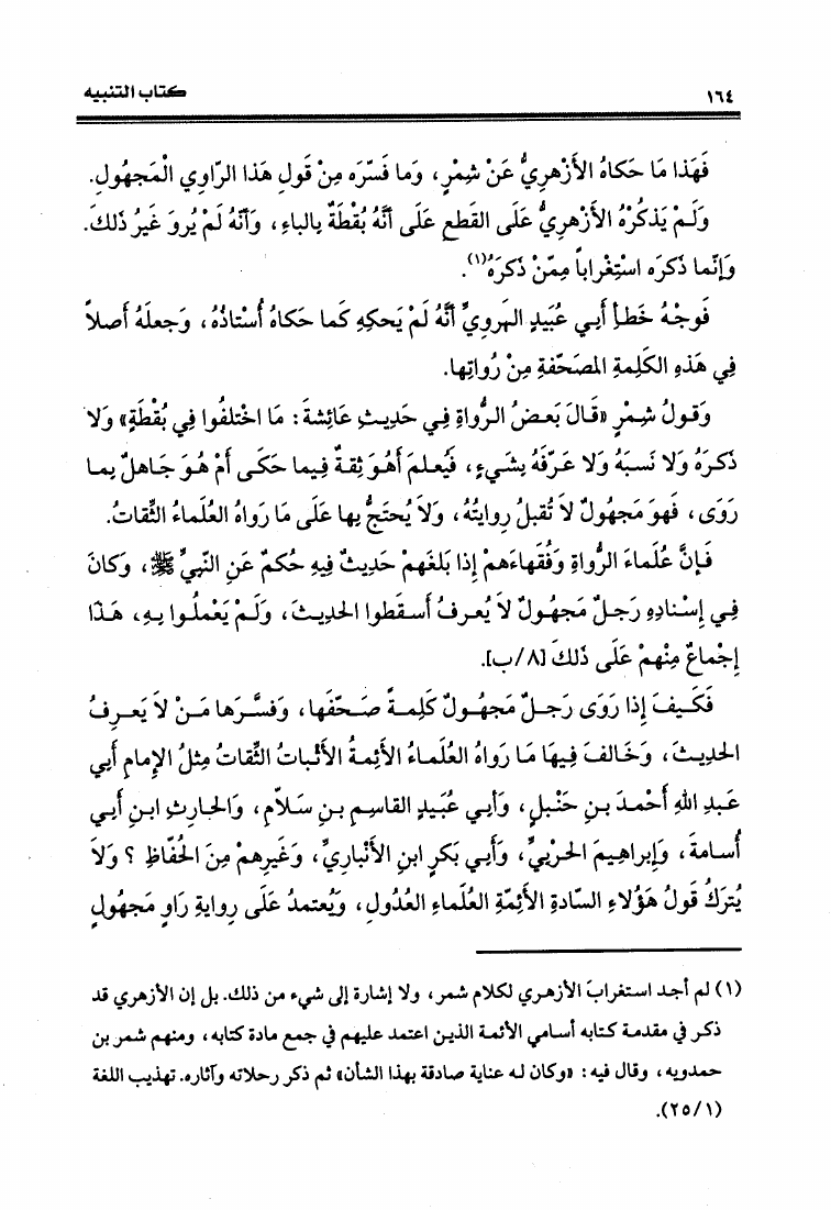 نام کتاب : التنبيه علي الألفاظ التي وقع في نقلها وضبطها تصحيف وخطاْ في تفسيرها ومعانيها وتحريف في كتاب الغريبين لأبي عبيد الهروي نویسنده : محمد بن ناصر بن محمد بن علي أبو الفضل السلامي جلد : 1 صفحه : 164