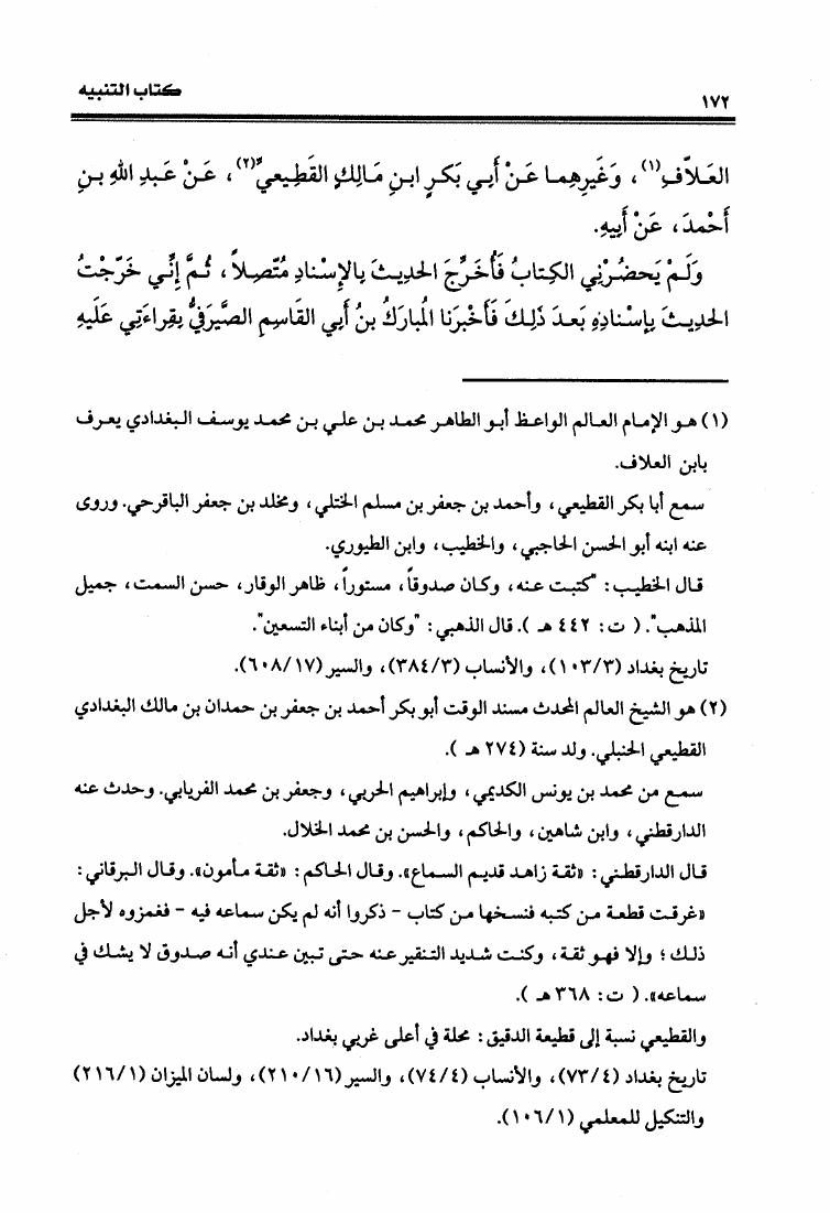 نام کتاب : التنبيه علي الألفاظ التي وقع في نقلها وضبطها تصحيف وخطاْ في تفسيرها ومعانيها وتحريف في كتاب الغريبين لأبي عبيد الهروي نویسنده : محمد بن ناصر بن محمد بن علي أبو الفضل السلامي جلد : 1 صفحه : 172