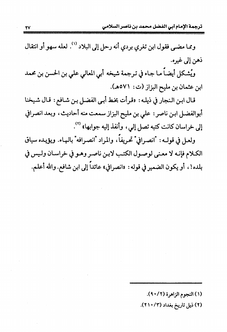 نام کتاب : التنبيه علي الألفاظ التي وقع في نقلها وضبطها تصحيف وخطاْ في تفسيرها ومعانيها وتحريف في كتاب الغريبين لأبي عبيد الهروي نویسنده : محمد بن ناصر بن محمد بن علي أبو الفضل السلامي جلد : 1 صفحه : 27
