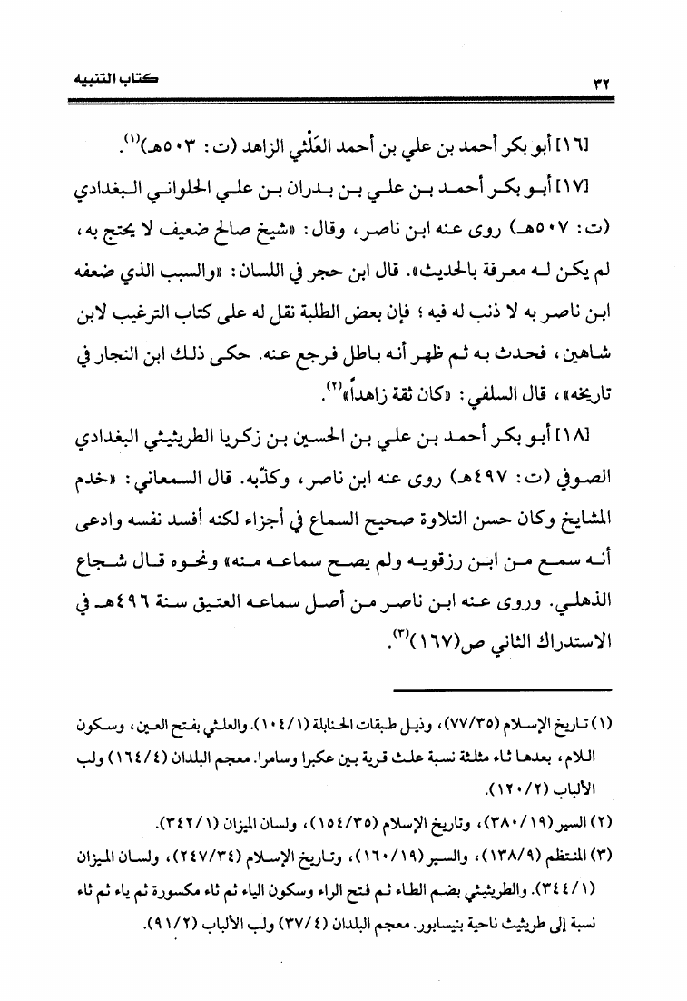 نام کتاب : التنبيه علي الألفاظ التي وقع في نقلها وضبطها تصحيف وخطاْ في تفسيرها ومعانيها وتحريف في كتاب الغريبين لأبي عبيد الهروي نویسنده : محمد بن ناصر بن محمد بن علي أبو الفضل السلامي جلد : 1 صفحه : 32