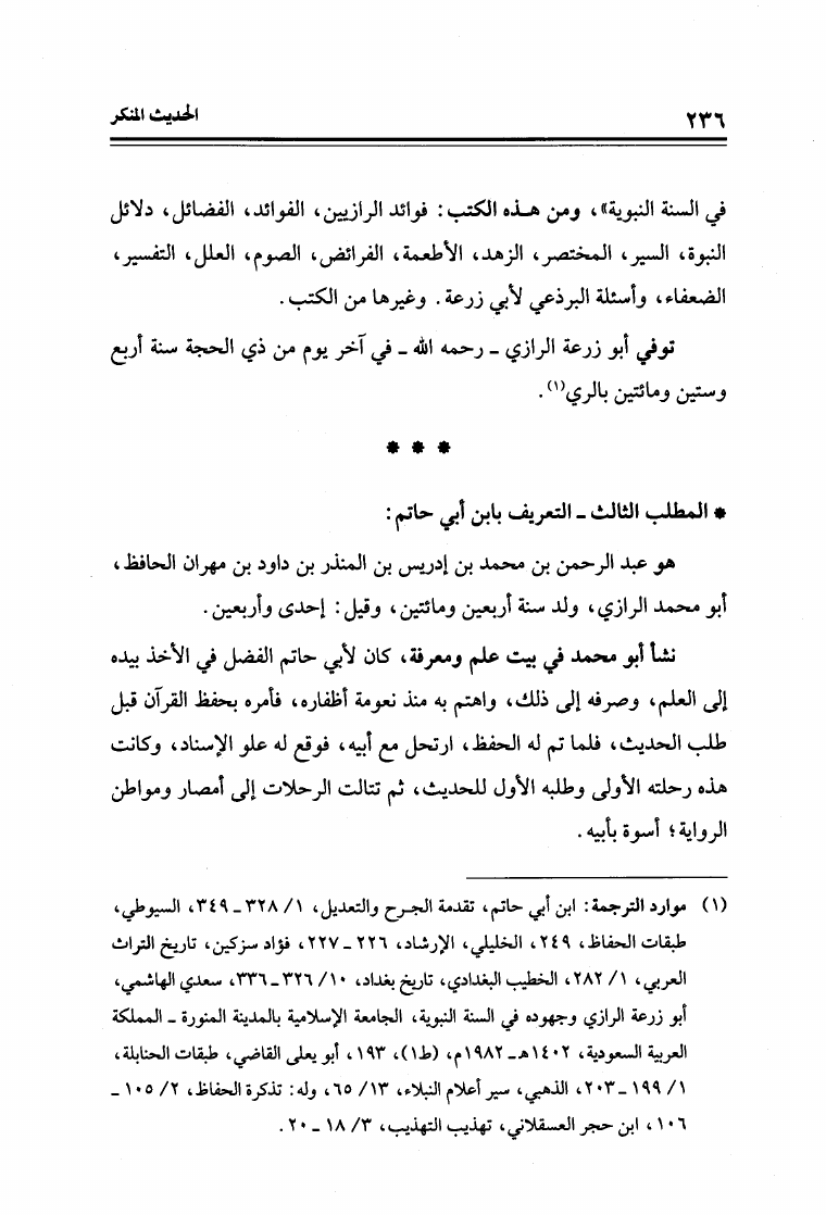 الحديث المنكر دارسة نظرية تطبيقية في كتاب علل الحديث لابن أبي حاتم