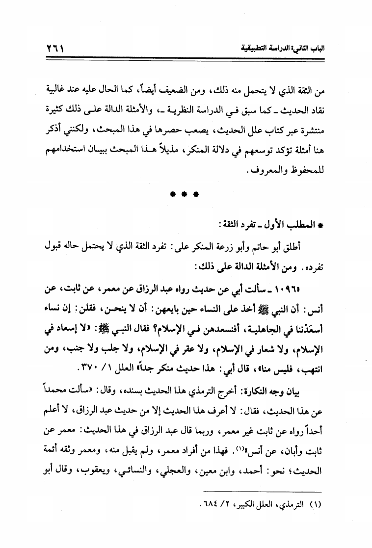 الحديث المنكر دارسة نظرية تطبيقية في كتاب علل الحديث لابن أبي حاتم
