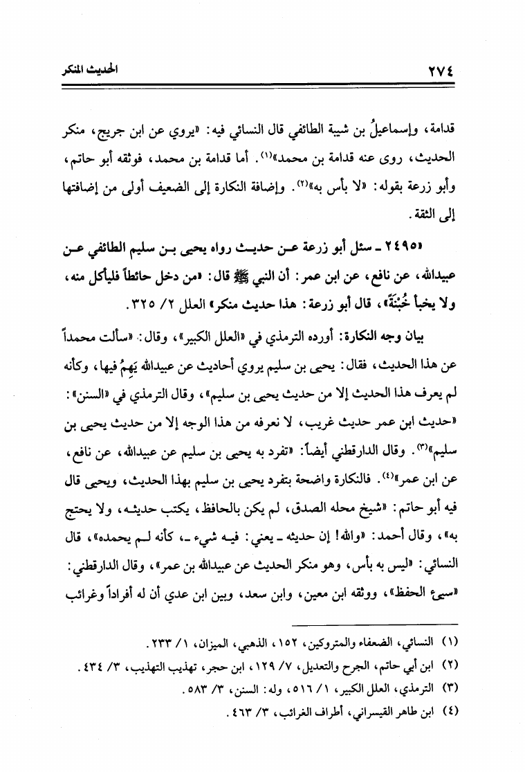 الحديث المنكر دارسة نظرية تطبيقية في كتاب علل الحديث لابن أبي حاتم