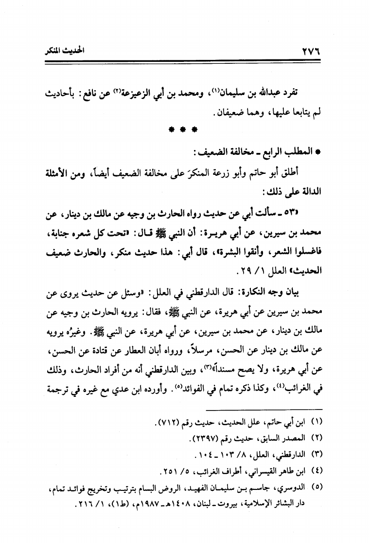 الحديث المنكر دارسة نظرية تطبيقية في كتاب علل الحديث لابن أبي حاتم