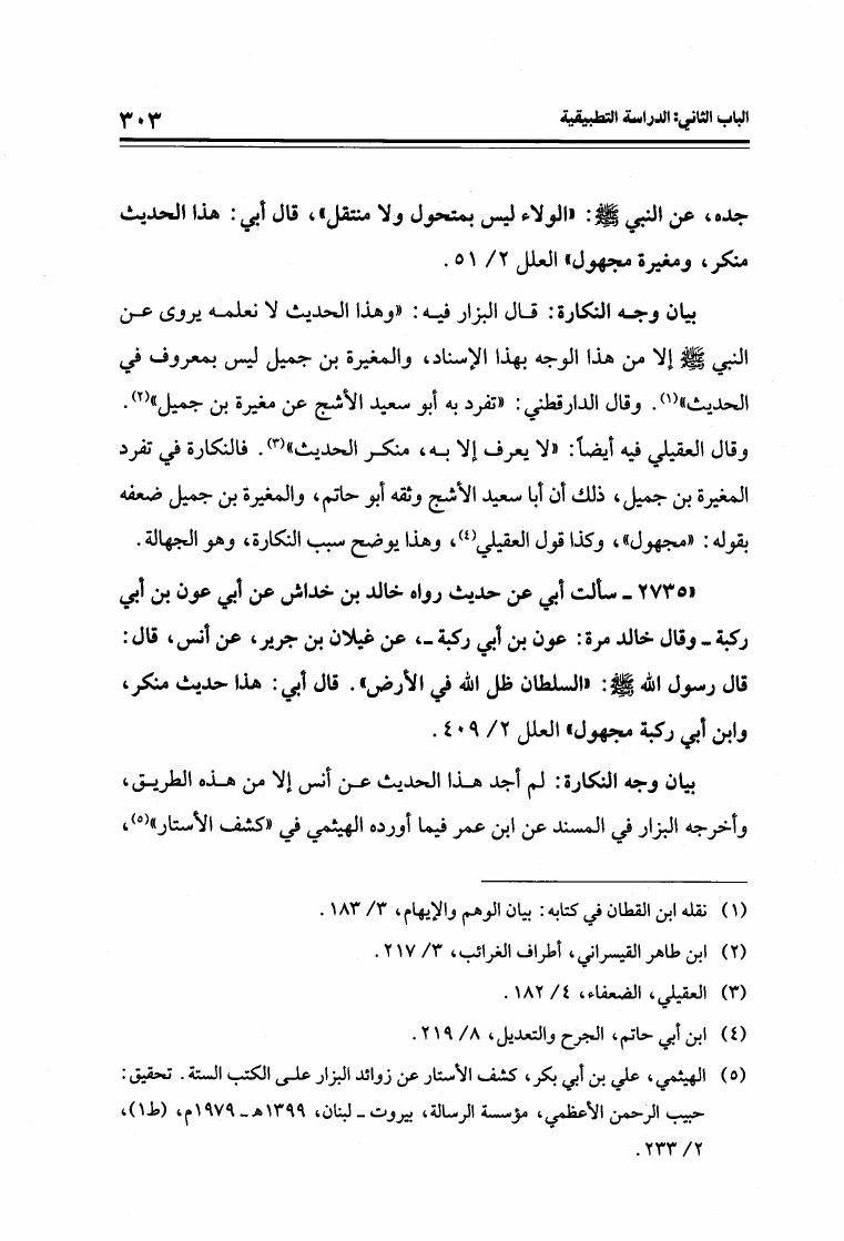 الحديث المنكر دارسة نظرية تطبيقية في كتاب علل الحديث لابن أبي حاتم