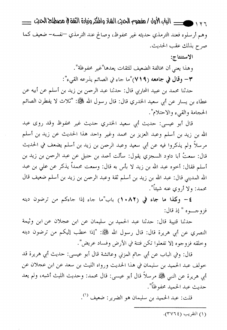 الشاذ والمنكر وزيادة الثقة موازنة بين المتقدمين والمتأخرين