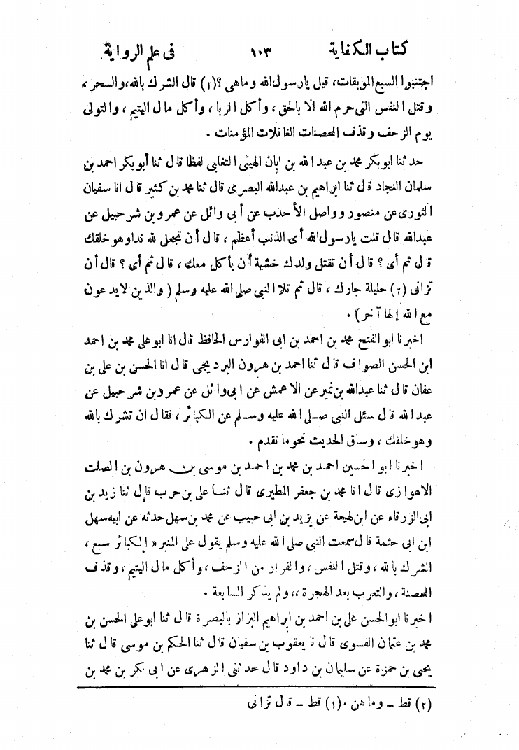 الكفاية في علم الرواية (ط. العثمانية)