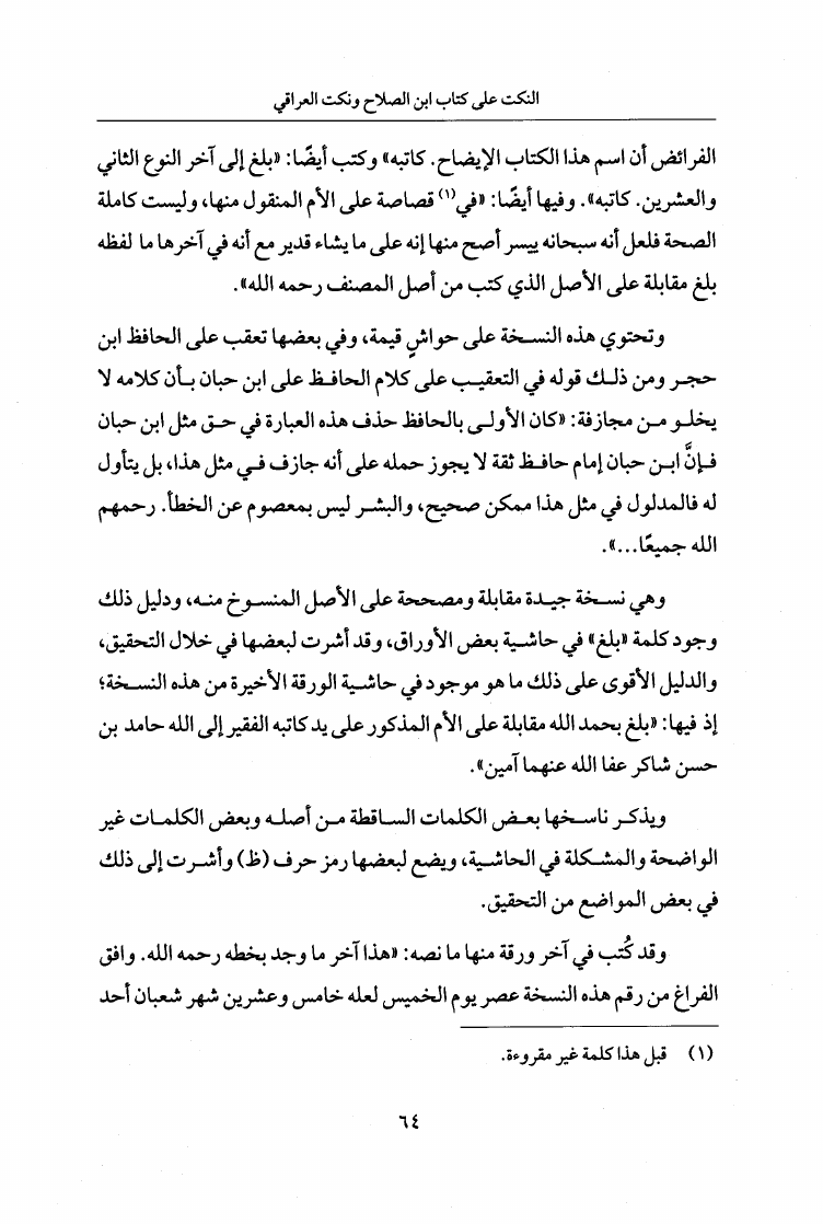النكت على كتاب ابن الصلاح ونكت العراقي (ت: الفحل)