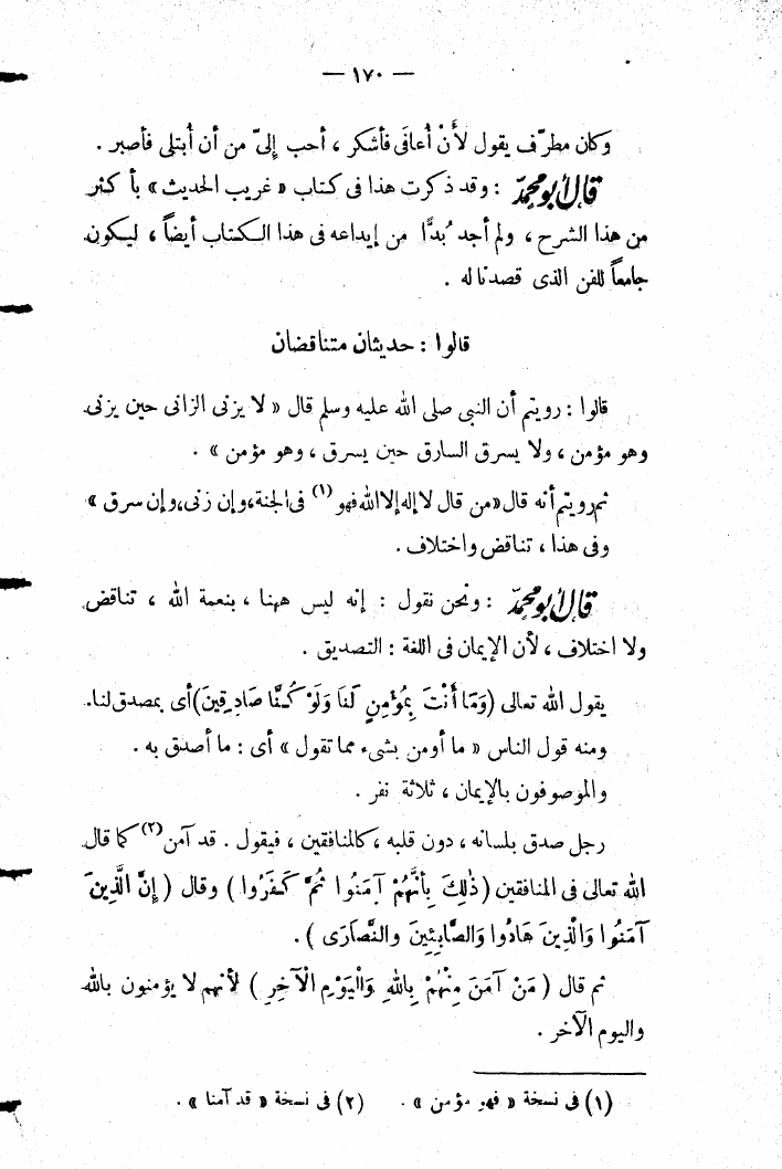 تأويل مختلف الحديث (ط الكليات الأزهرية)