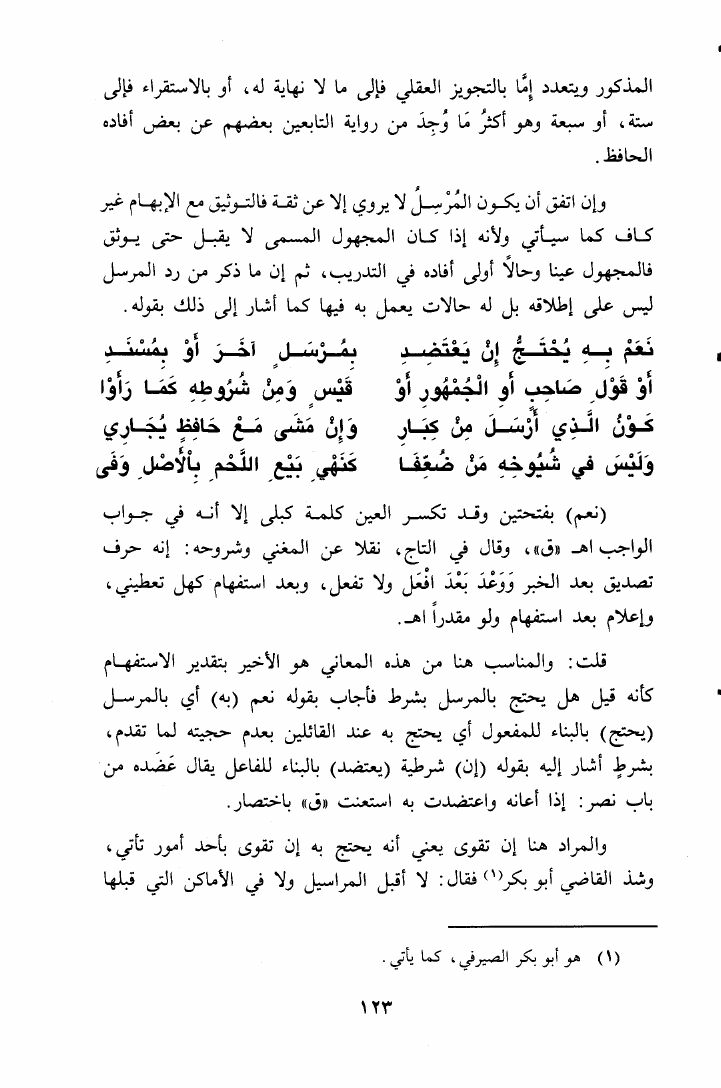 نام کتاب : شرح ألفية السيوطي في الحديث المسماة إسعاف ذوي الوطر بشرح نظم الدرر في علم الأثر (ط. الغرباء) نویسنده : محمد بن علي بن آدم بن موسى الأثيوبي الولوي جلد : 1 صفحه : 123