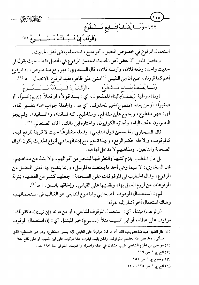 نام کتاب : شرح ألفية السيوطي في علم الحديث المسمى إسعاف ذوي الوطر بشرح نظم الدرر في علم الأثر (ط. الآثار) نویسنده : محمد بن علي بن آدم بن موسى الإثيوبي الولوي جلد : 1 صفحه : 108