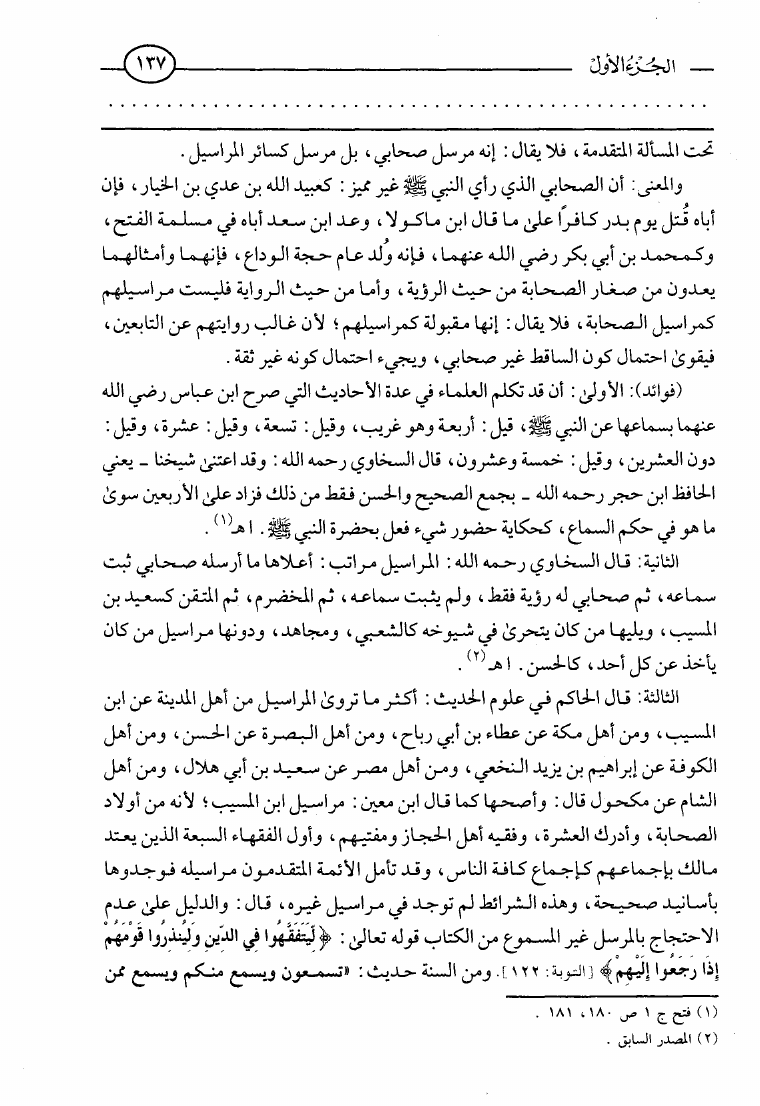 نام کتاب : شرح ألفية السيوطي في علم الحديث المسمى إسعاف ذوي الوطر بشرح نظم الدرر في علم الأثر (ط. الآثار) نویسنده : محمد بن علي بن آدم بن موسى الإثيوبي الولوي جلد : 1 صفحه : 137