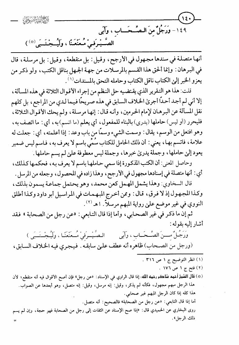 نام کتاب : شرح ألفية السيوطي في علم الحديث المسمى إسعاف ذوي الوطر بشرح نظم الدرر في علم الأثر (ط. الآثار) نویسنده : محمد بن علي بن آدم بن موسى الإثيوبي الولوي جلد : 1 صفحه : 140