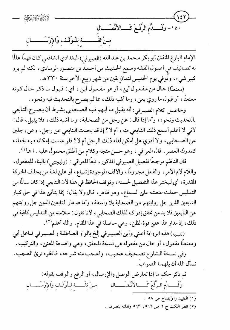 نام کتاب : شرح ألفية السيوطي في علم الحديث المسمى إسعاف ذوي الوطر بشرح نظم الدرر في علم الأثر (ط. الآثار) نویسنده : محمد بن علي بن آدم بن موسى الإثيوبي الولوي جلد : 1 صفحه : 142