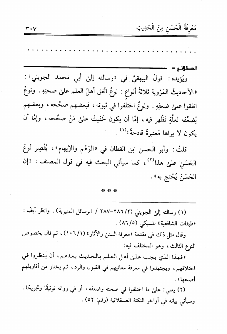 نام کتاب : علوم الحديث لابن الصلاح ونكت الحافظ العراقي المسماة بالتقييد والإيضاح لما أطلق وأغلق من كتاب ابن الصلاح ونكت الحافظ العسقلاني المسماة بالإفصاح بتكميل النكت على ابن الصلاح (ت: عوض الله) نویسنده : ابن الصلاح - العراقي - ابن حجر جلد : 1 صفحه : 307