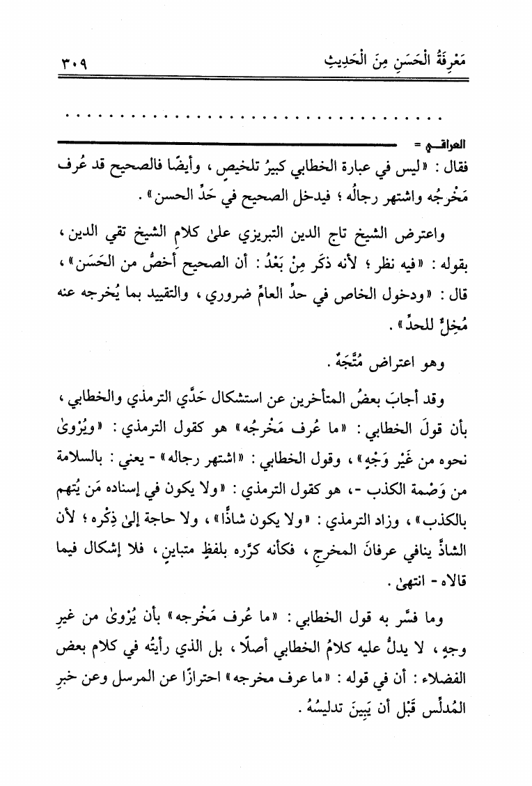 نام کتاب : علوم الحديث لابن الصلاح ونكت الحافظ العراقي المسماة بالتقييد والإيضاح لما أطلق وأغلق من كتاب ابن الصلاح ونكت الحافظ العسقلاني المسماة بالإفصاح بتكميل النكت على ابن الصلاح (ت: عوض الله) نویسنده : ابن الصلاح - العراقي - ابن حجر جلد : 1 صفحه : 309