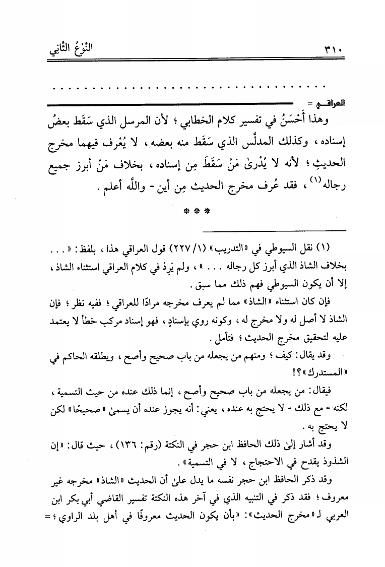 نام کتاب : علوم الحديث لابن الصلاح ونكت الحافظ العراقي المسماة بالتقييد والإيضاح لما أطلق وأغلق من كتاب ابن الصلاح ونكت الحافظ العسقلاني المسماة بالإفصاح بتكميل النكت على ابن الصلاح (ت: عوض الله) نویسنده : ابن الصلاح - العراقي - ابن حجر جلد : 1 صفحه : 310