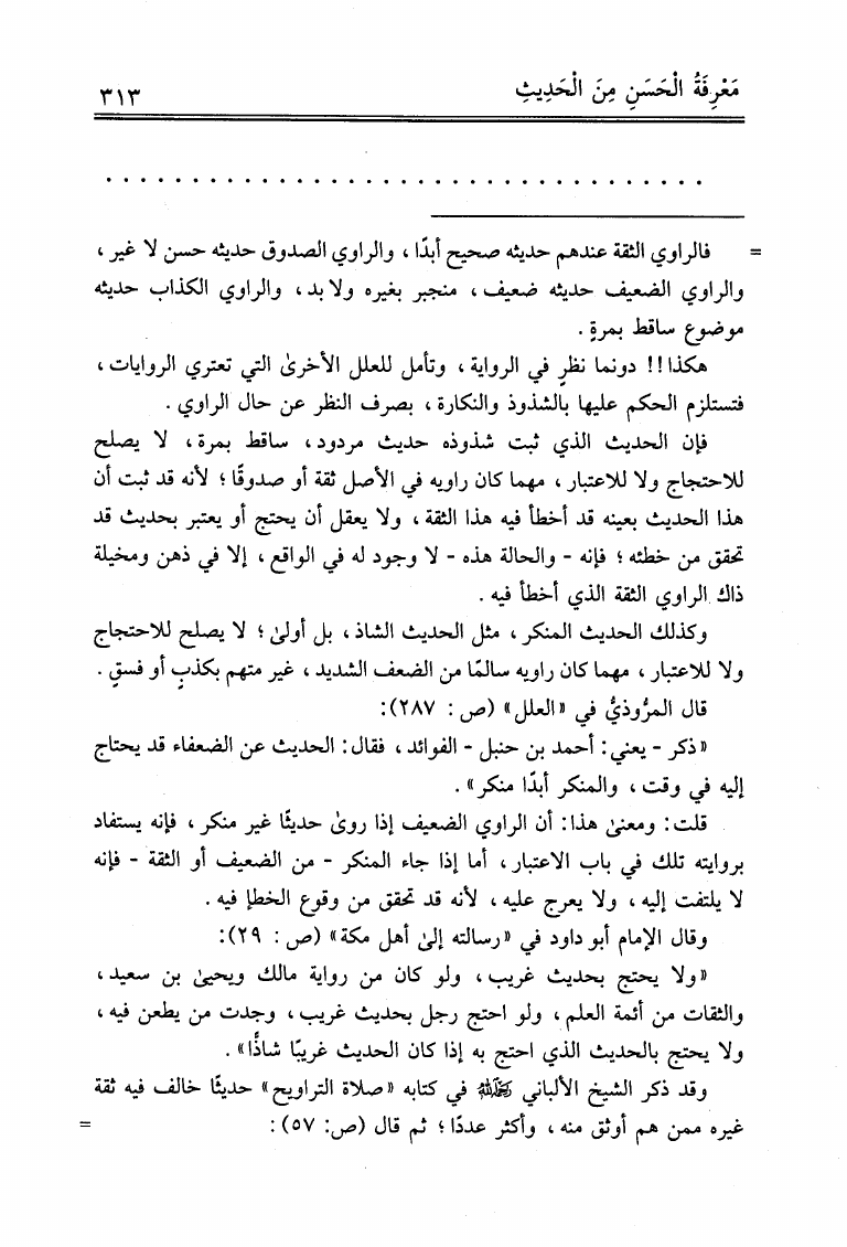 نام کتاب : علوم الحديث لابن الصلاح ونكت الحافظ العراقي المسماة بالتقييد والإيضاح لما أطلق وأغلق من كتاب ابن الصلاح ونكت الحافظ العسقلاني المسماة بالإفصاح بتكميل النكت على ابن الصلاح (ت: عوض الله) نویسنده : ابن الصلاح - العراقي - ابن حجر جلد : 1 صفحه : 313