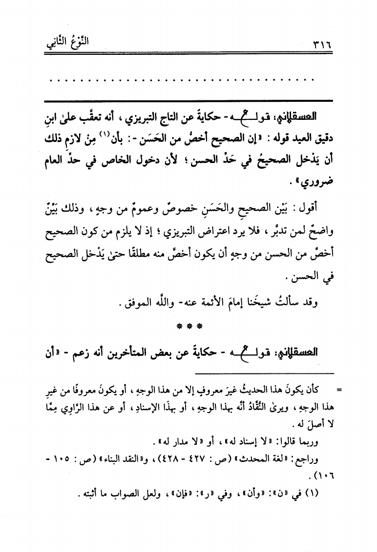 نام کتاب : علوم الحديث لابن الصلاح ونكت الحافظ العراقي المسماة بالتقييد والإيضاح لما أطلق وأغلق من كتاب ابن الصلاح ونكت الحافظ العسقلاني المسماة بالإفصاح بتكميل النكت على ابن الصلاح (ت: عوض الله) نویسنده : ابن الصلاح - العراقي - ابن حجر جلد : 1 صفحه : 316