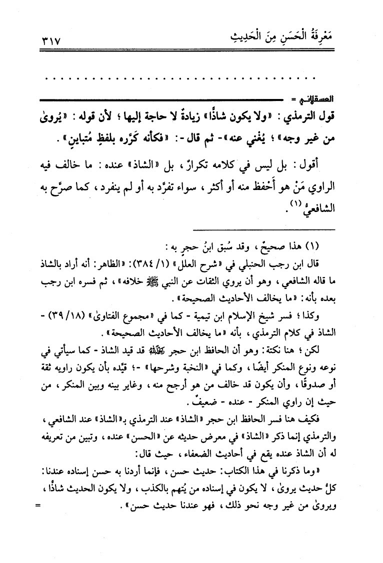 نام کتاب : علوم الحديث لابن الصلاح ونكت الحافظ العراقي المسماة بالتقييد والإيضاح لما أطلق وأغلق من كتاب ابن الصلاح ونكت الحافظ العسقلاني المسماة بالإفصاح بتكميل النكت على ابن الصلاح (ت: عوض الله) نویسنده : ابن الصلاح - العراقي - ابن حجر جلد : 1 صفحه : 317