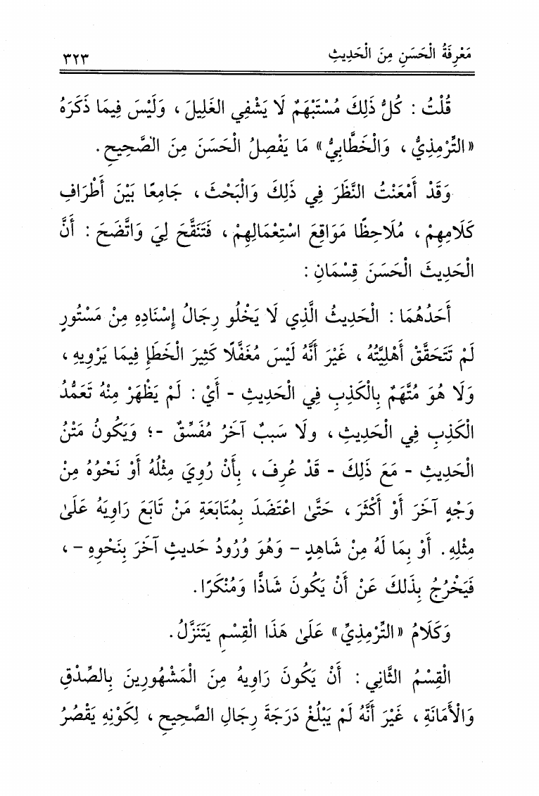 نام کتاب : علوم الحديث لابن الصلاح ونكت الحافظ العراقي المسماة بالتقييد والإيضاح لما أطلق وأغلق من كتاب ابن الصلاح ونكت الحافظ العسقلاني المسماة بالإفصاح بتكميل النكت على ابن الصلاح (ت: عوض الله) نویسنده : ابن الصلاح - العراقي - ابن حجر جلد : 1 صفحه : 323