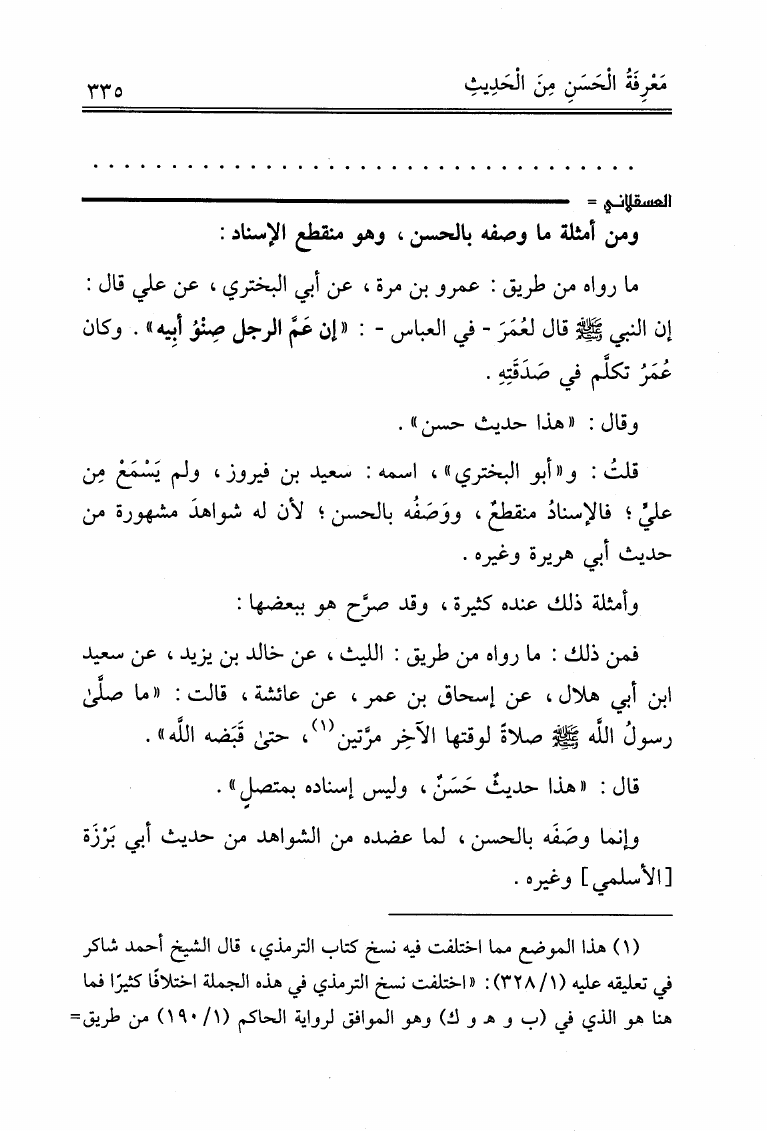 نام کتاب : علوم الحديث لابن الصلاح ونكت الحافظ العراقي المسماة بالتقييد والإيضاح لما أطلق وأغلق من كتاب ابن الصلاح ونكت الحافظ العسقلاني المسماة بالإفصاح بتكميل النكت على ابن الصلاح (ت: عوض الله) نویسنده : ابن الصلاح - العراقي - ابن حجر جلد : 1 صفحه : 335
