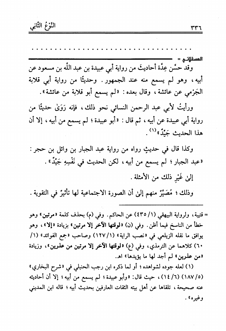 نام کتاب : علوم الحديث لابن الصلاح ونكت الحافظ العراقي المسماة بالتقييد والإيضاح لما أطلق وأغلق من كتاب ابن الصلاح ونكت الحافظ العسقلاني المسماة بالإفصاح بتكميل النكت على ابن الصلاح (ت: عوض الله) نویسنده : ابن الصلاح - العراقي - ابن حجر جلد : 1 صفحه : 336