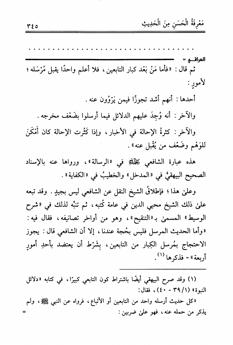 نام کتاب : علوم الحديث لابن الصلاح ونكت الحافظ العراقي المسماة بالتقييد والإيضاح لما أطلق وأغلق من كتاب ابن الصلاح ونكت الحافظ العسقلاني المسماة بالإفصاح بتكميل النكت على ابن الصلاح (ت: عوض الله) نویسنده : ابن الصلاح - العراقي - ابن حجر جلد : 1 صفحه : 345