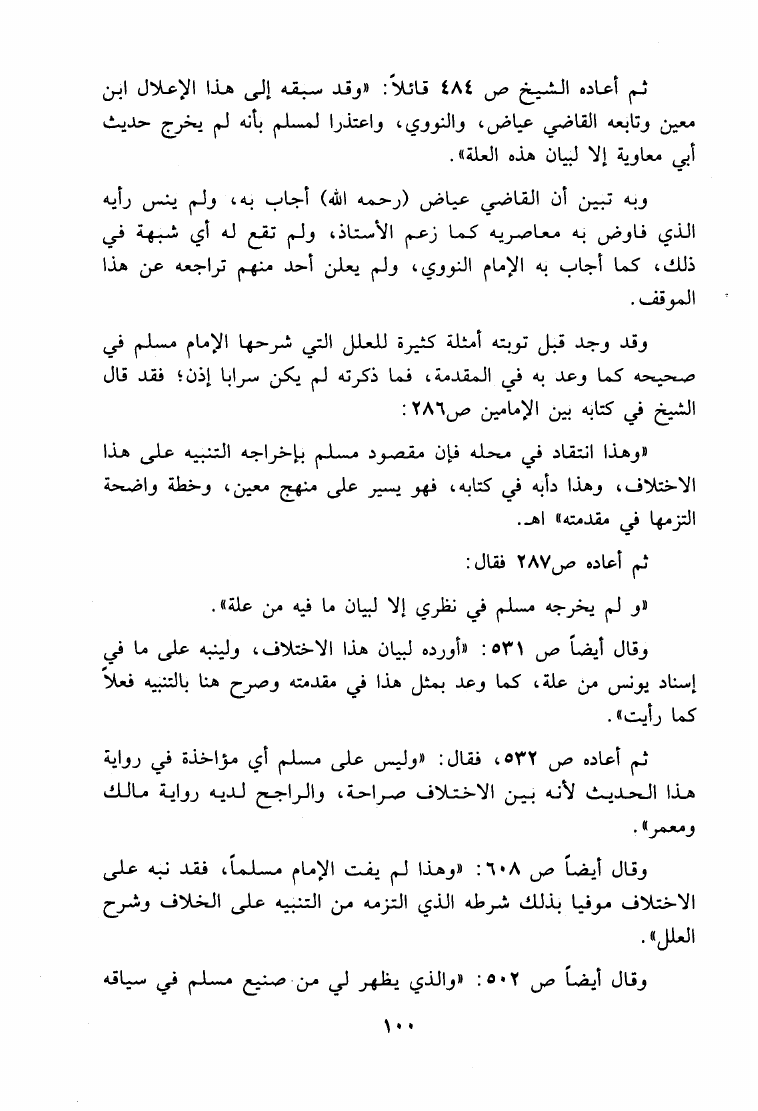 نام کتاب : ما هكذا تورد يا سعد الإبل حوار علمي مع الدكتور ربيع حول منهج المحدثين النقاد القدامى في نقد الأحاديث - صحيح مسلم أنموذجا نویسنده : حمزة عبد الله المليباري جلد : 1 صفحه : 100