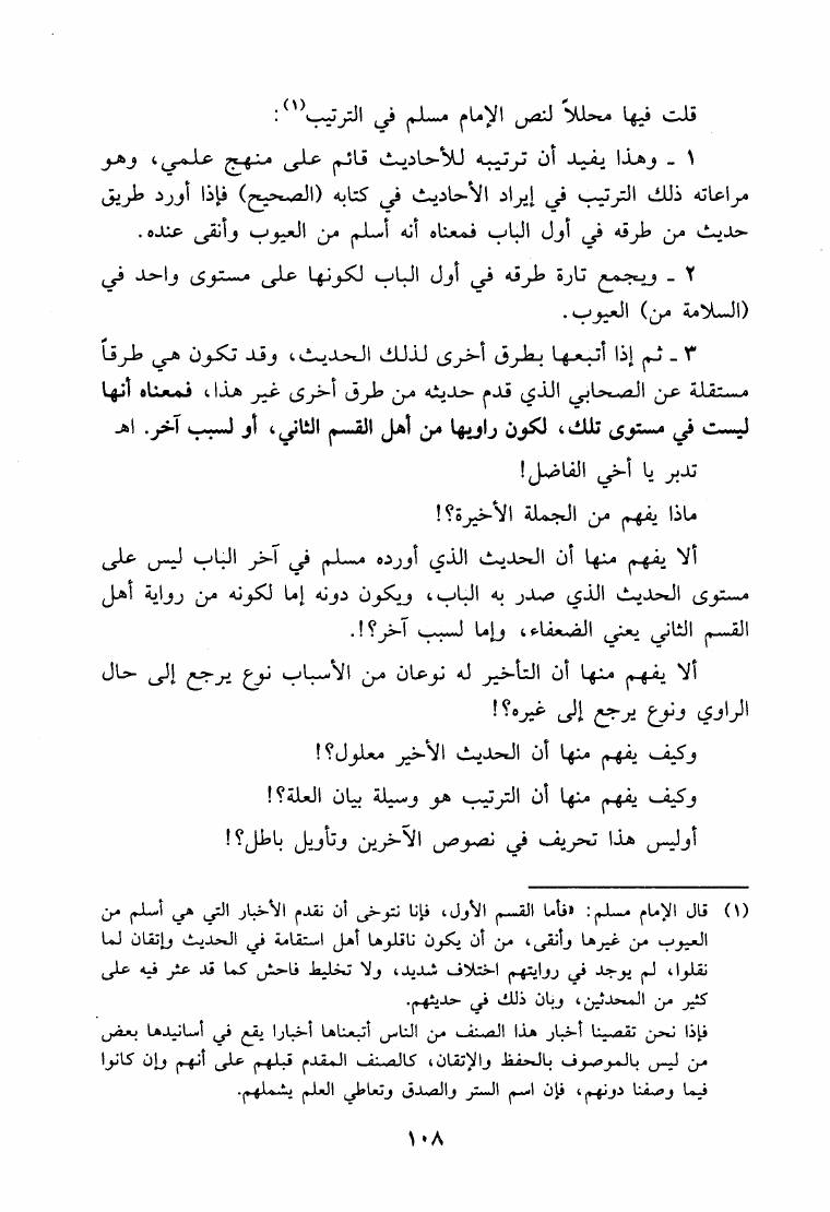 نام کتاب : ما هكذا تورد يا سعد الإبل حوار علمي مع الدكتور ربيع حول منهج المحدثين النقاد القدامى في نقد الأحاديث - صحيح مسلم أنموذجا نویسنده : حمزة عبد الله المليباري جلد : 1 صفحه : 108