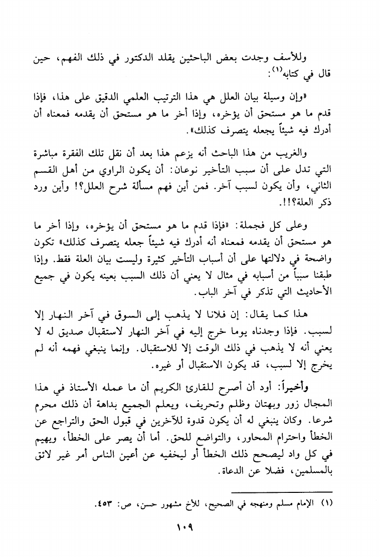 نام کتاب : ما هكذا تورد يا سعد الإبل حوار علمي مع الدكتور ربيع حول منهج المحدثين النقاد القدامى في نقد الأحاديث - صحيح مسلم أنموذجا نویسنده : حمزة عبد الله المليباري جلد : 1 صفحه : 109