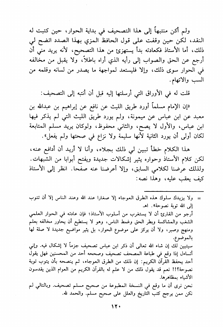 نام کتاب : ما هكذا تورد يا سعد الإبل حوار علمي مع الدكتور ربيع حول منهج المحدثين النقاد القدامى في نقد الأحاديث - صحيح مسلم أنموذجا نویسنده : حمزة عبد الله المليباري جلد : 1 صفحه : 120