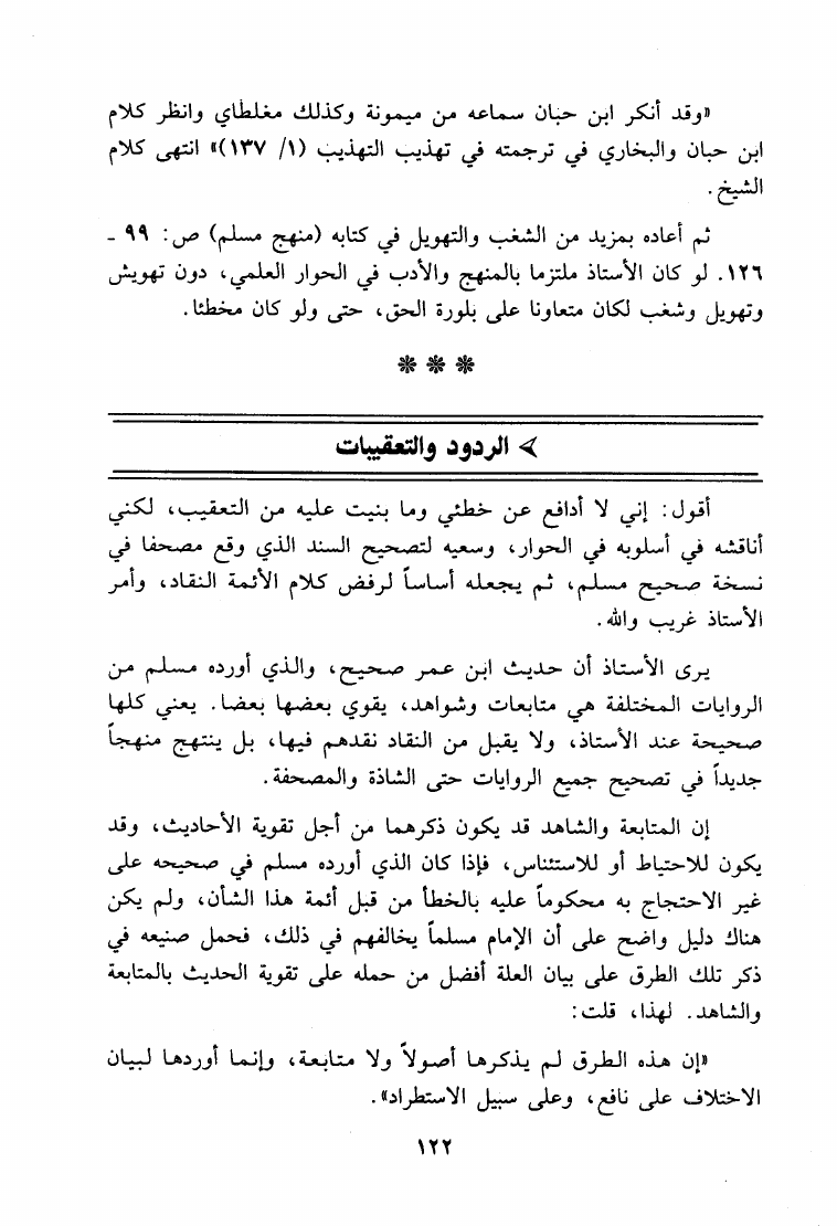 نام کتاب : ما هكذا تورد يا سعد الإبل حوار علمي مع الدكتور ربيع حول منهج المحدثين النقاد القدامى في نقد الأحاديث - صحيح مسلم أنموذجا نویسنده : حمزة عبد الله المليباري جلد : 1 صفحه : 122