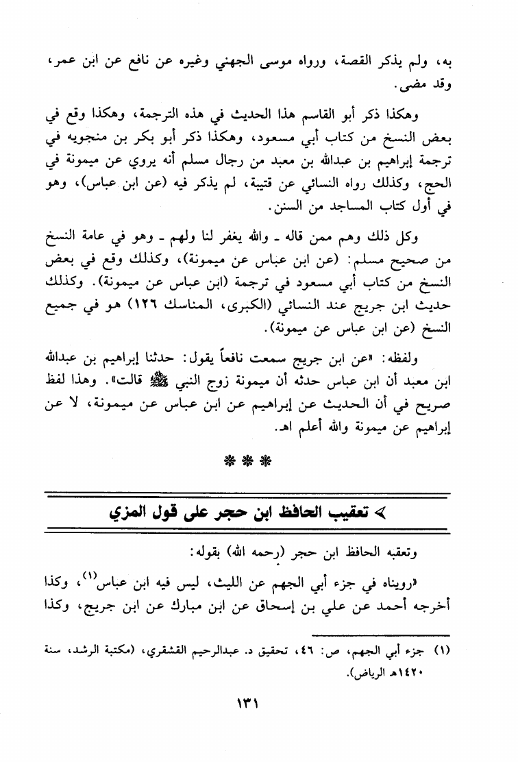 نام کتاب : ما هكذا تورد يا سعد الإبل حوار علمي مع الدكتور ربيع حول منهج المحدثين النقاد القدامى في نقد الأحاديث - صحيح مسلم أنموذجا نویسنده : حمزة عبد الله المليباري جلد : 1 صفحه : 131