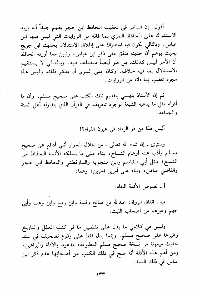 نام کتاب : ما هكذا تورد يا سعد الإبل حوار علمي مع الدكتور ربيع حول منهج المحدثين النقاد القدامى في نقد الأحاديث - صحيح مسلم أنموذجا نویسنده : حمزة عبد الله المليباري جلد : 1 صفحه : 133