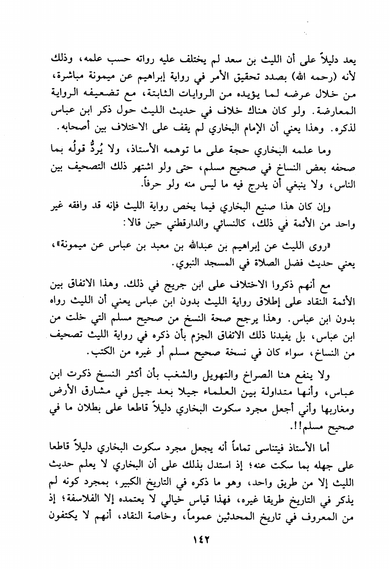 نام کتاب : ما هكذا تورد يا سعد الإبل حوار علمي مع الدكتور ربيع حول منهج المحدثين النقاد القدامى في نقد الأحاديث - صحيح مسلم أنموذجا نویسنده : حمزة عبد الله المليباري جلد : 1 صفحه : 142