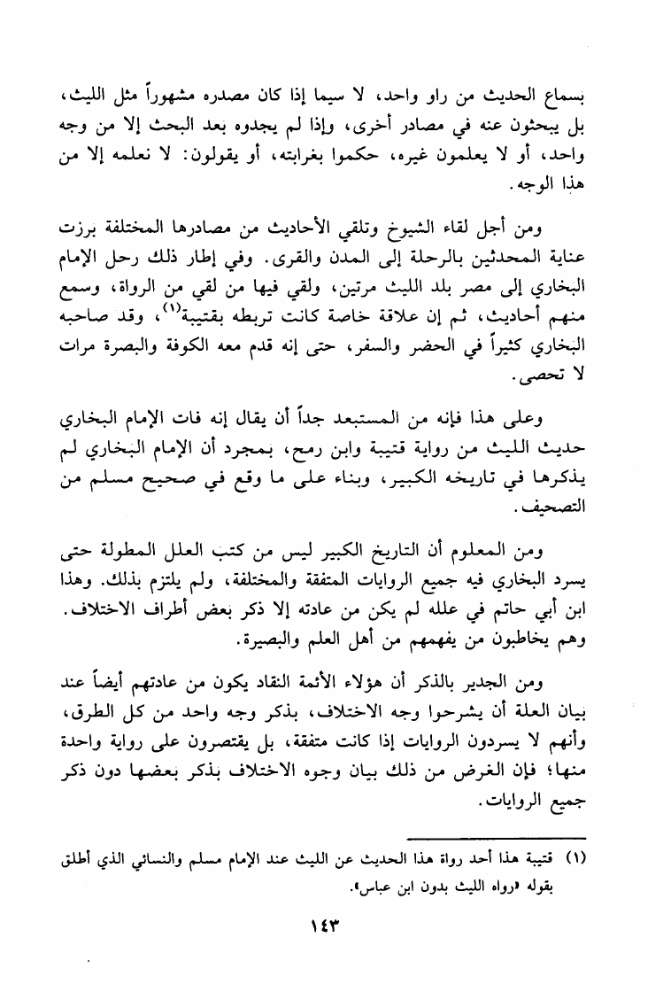 نام کتاب : ما هكذا تورد يا سعد الإبل حوار علمي مع الدكتور ربيع حول منهج المحدثين النقاد القدامى في نقد الأحاديث - صحيح مسلم أنموذجا نویسنده : حمزة عبد الله المليباري جلد : 1 صفحه : 143