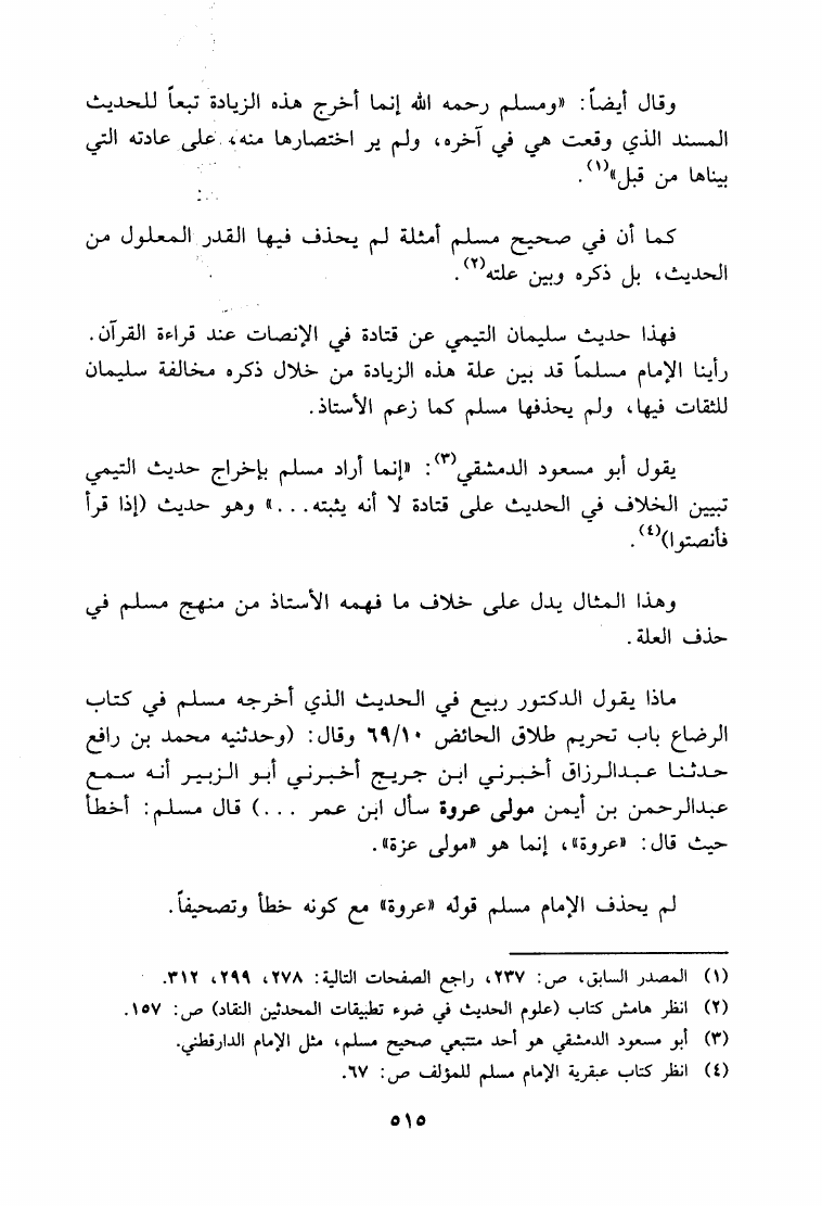 نام کتاب : ما هكذا تورد يا سعد الإبل حوار علمي مع الدكتور ربيع حول منهج المحدثين النقاد القدامى في نقد الأحاديث - صحيح مسلم أنموذجا نویسنده : حمزة عبد الله المليباري جلد : 1 صفحه : 515