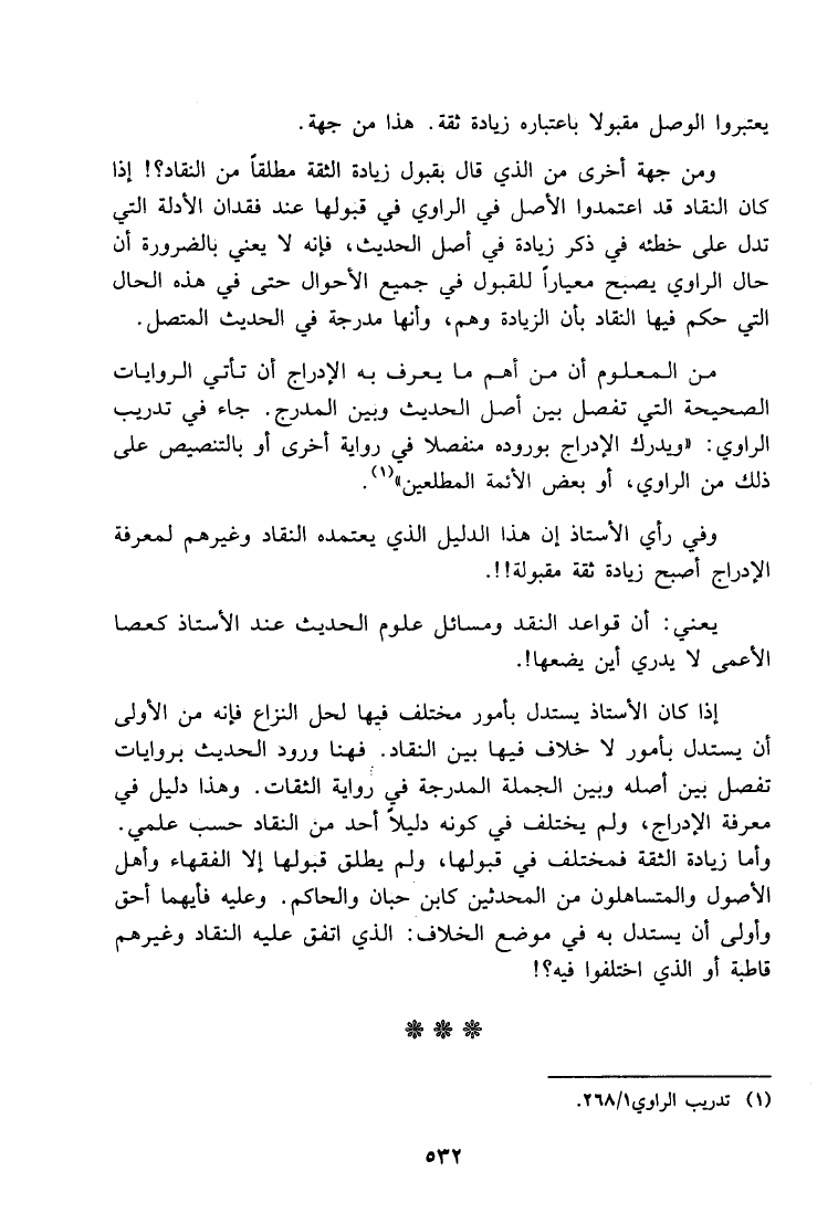 نام کتاب : ما هكذا تورد يا سعد الإبل حوار علمي مع الدكتور ربيع حول منهج المحدثين النقاد القدامى في نقد الأحاديث - صحيح مسلم أنموذجا نویسنده : حمزة عبد الله المليباري جلد : 1 صفحه : 532
