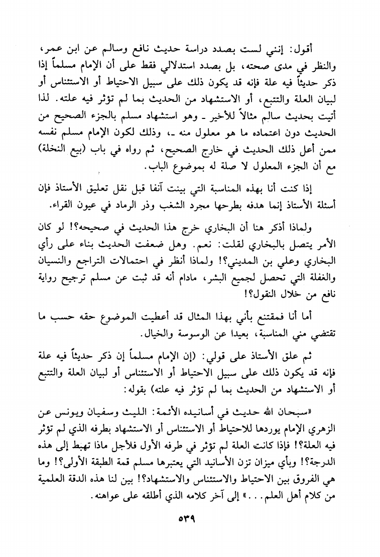 نام کتاب : ما هكذا تورد يا سعد الإبل حوار علمي مع الدكتور ربيع حول منهج المحدثين النقاد القدامى في نقد الأحاديث - صحيح مسلم أنموذجا نویسنده : حمزة عبد الله المليباري جلد : 1 صفحه : 539