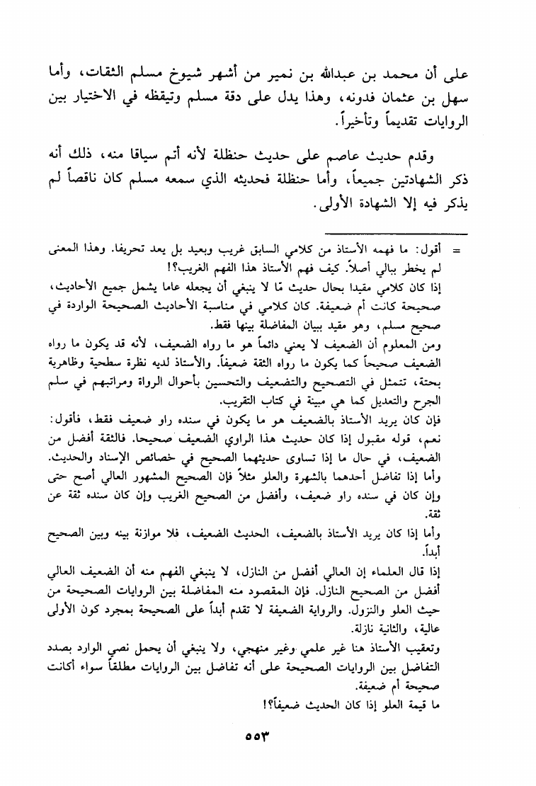 نام کتاب : ما هكذا تورد يا سعد الإبل حوار علمي مع الدكتور ربيع حول منهج المحدثين النقاد القدامى في نقد الأحاديث - صحيح مسلم أنموذجا نویسنده : حمزة عبد الله المليباري جلد : 1 صفحه : 553