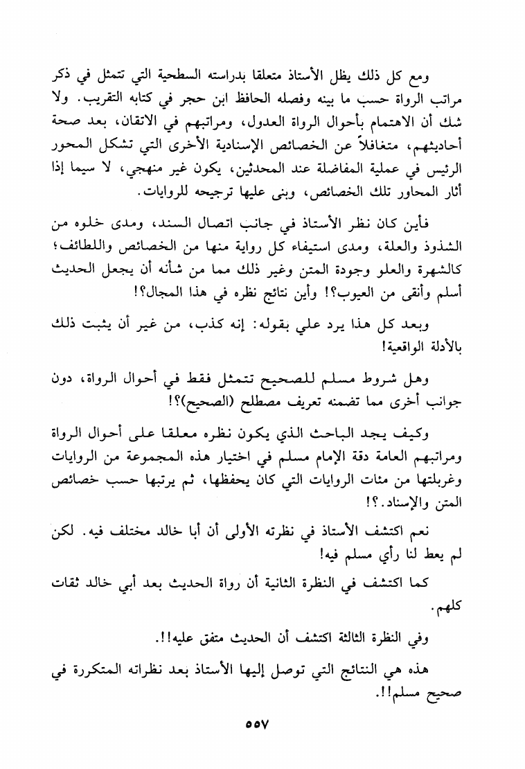 نام کتاب : ما هكذا تورد يا سعد الإبل حوار علمي مع الدكتور ربيع حول منهج المحدثين النقاد القدامى في نقد الأحاديث - صحيح مسلم أنموذجا نویسنده : حمزة عبد الله المليباري جلد : 1 صفحه : 557