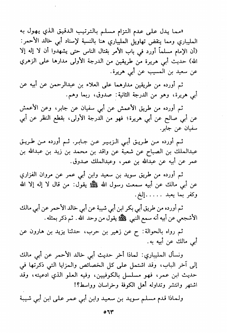 نام کتاب : ما هكذا تورد يا سعد الإبل حوار علمي مع الدكتور ربيع حول منهج المحدثين النقاد القدامى في نقد الأحاديث - صحيح مسلم أنموذجا نویسنده : حمزة عبد الله المليباري جلد : 1 صفحه : 563