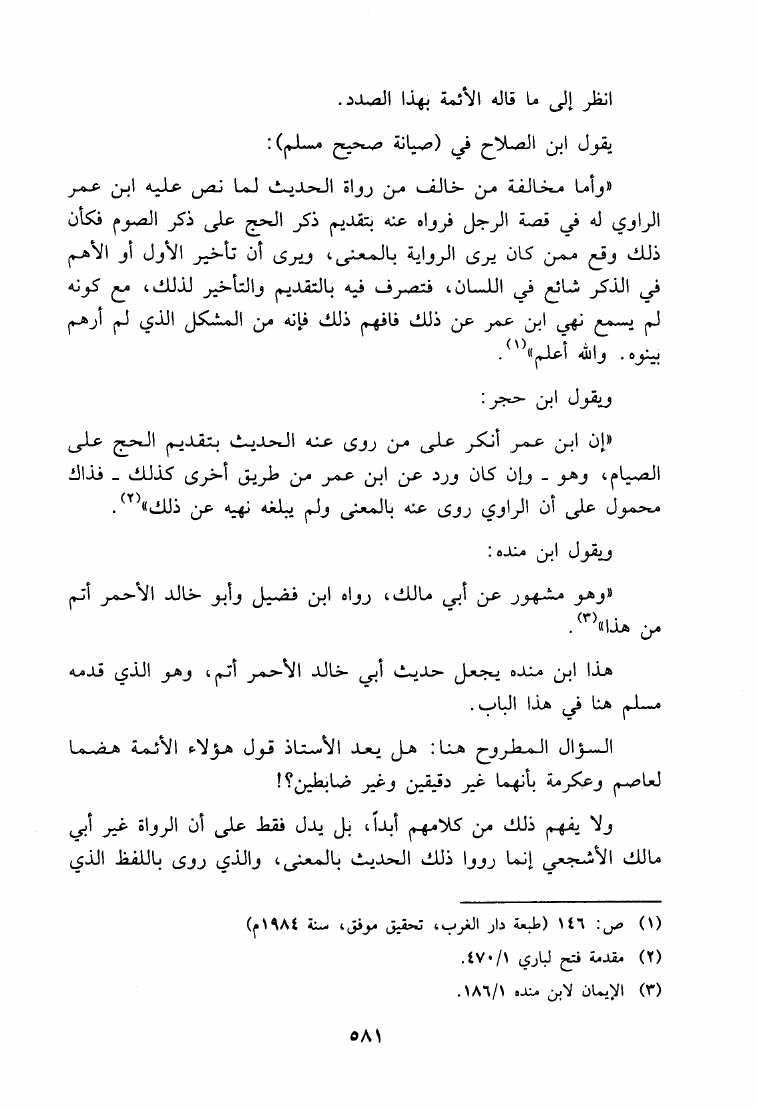 نام کتاب : ما هكذا تورد يا سعد الإبل حوار علمي مع الدكتور ربيع حول منهج المحدثين النقاد القدامى في نقد الأحاديث - صحيح مسلم أنموذجا نویسنده : حمزة عبد الله المليباري جلد : 1 صفحه : 581