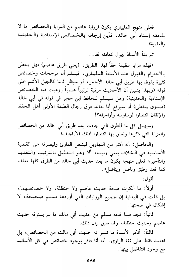 نام کتاب : ما هكذا تورد يا سعد الإبل حوار علمي مع الدكتور ربيع حول منهج المحدثين النقاد القدامى في نقد الأحاديث - صحيح مسلم أنموذجا نویسنده : حمزة عبد الله المليباري جلد : 1 صفحه : 585