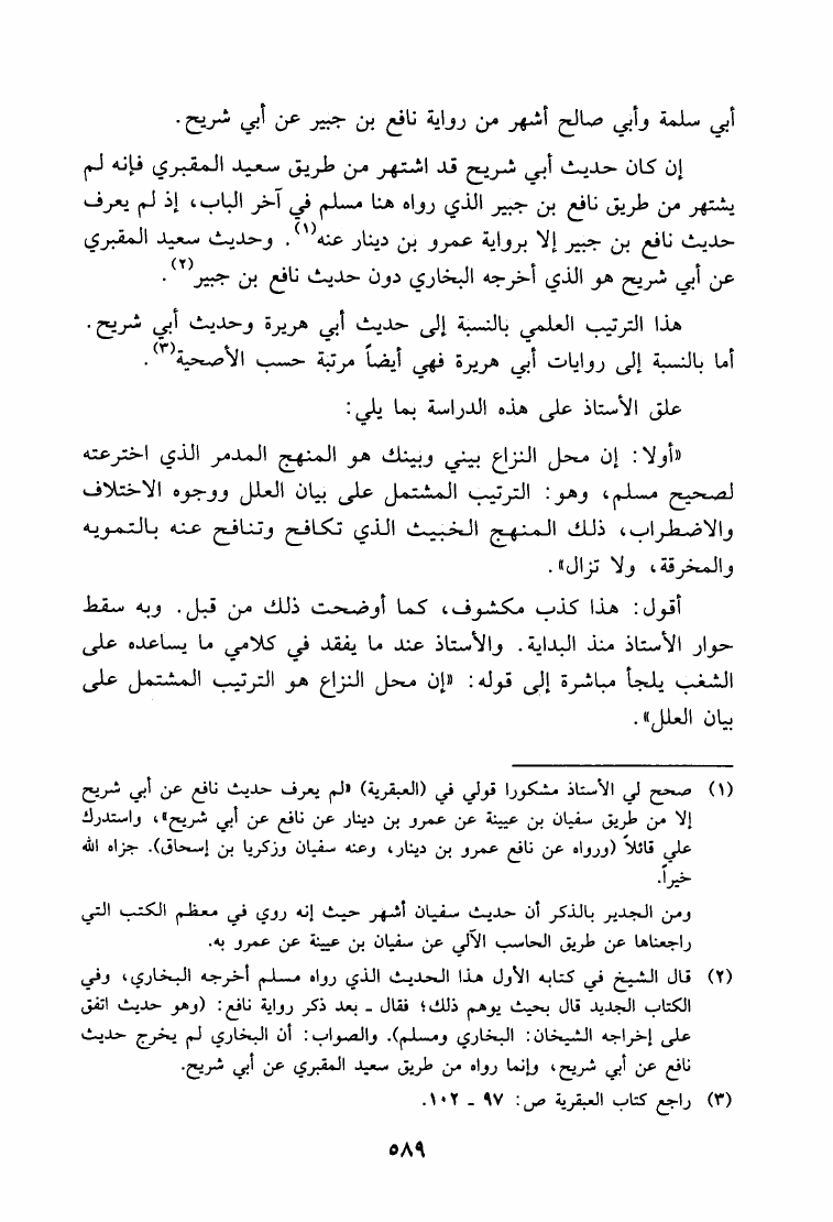 نام کتاب : ما هكذا تورد يا سعد الإبل حوار علمي مع الدكتور ربيع حول منهج المحدثين النقاد القدامى في نقد الأحاديث - صحيح مسلم أنموذجا نویسنده : حمزة عبد الله المليباري جلد : 1 صفحه : 589
